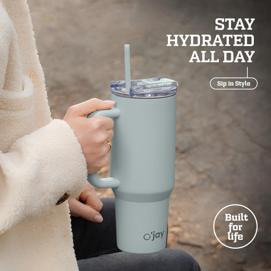 O'jay Vaso Aislado De Acero Inoxidable 50 Onzas Con Asa Y Tapa Con Popote