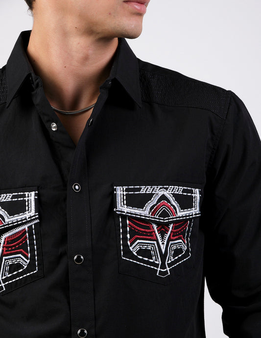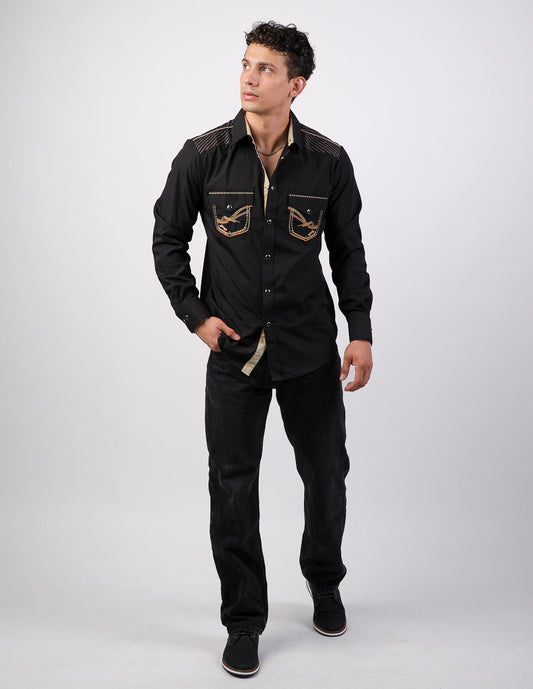 Camisa Para Hombre Vaquera Marca Cuaco WM022-022-01 Black