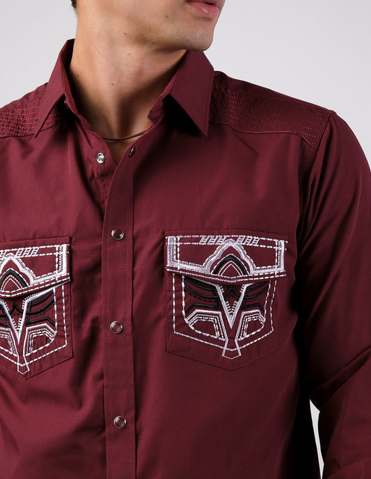 Camisa Para Hombre Vaquera Marca Cuaco WM022-023-04 Burgundy