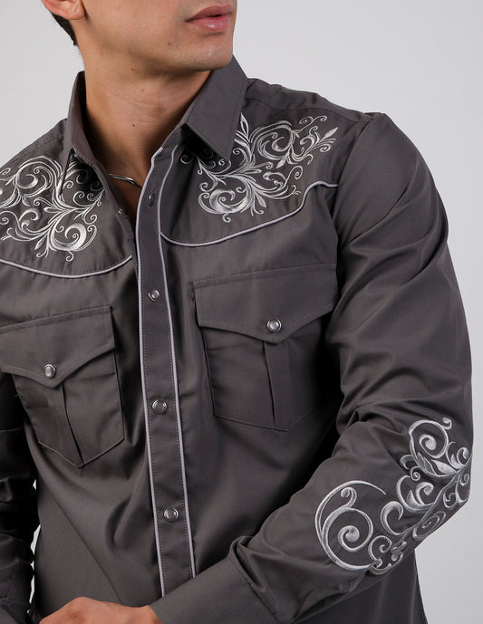 Camisa Para Hombre Vaquera Marca Cuaco WM022-025-05 Grey