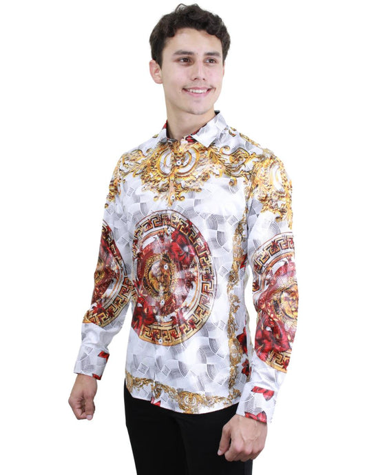 Camisa para Hombre Marca BENZINY LS5025 WHITE-RED