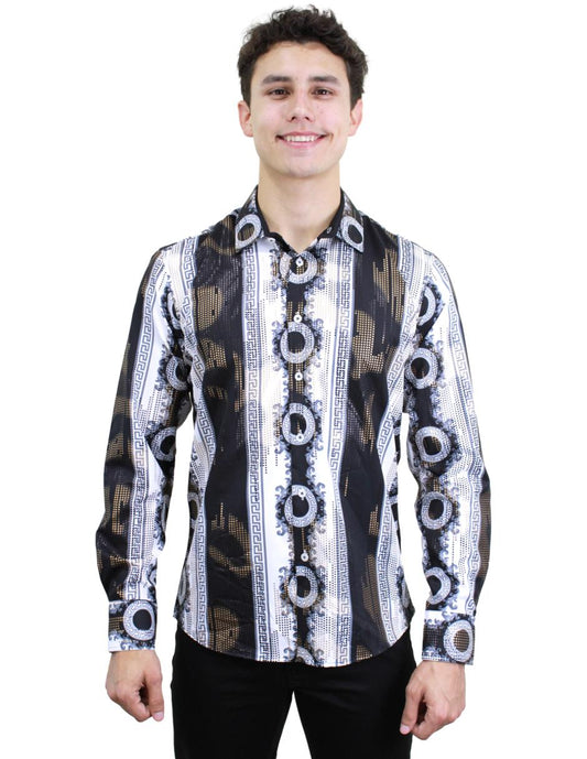 Camisa para Hombre marca BENZINY LS5047-BLACK-WHITE