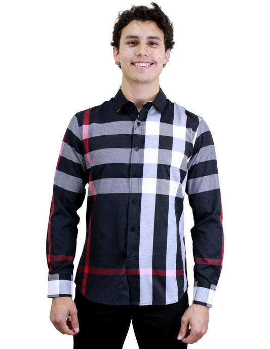 Camisa Para Hombre Marca Pavini LS021026-38 Negra/Blanca