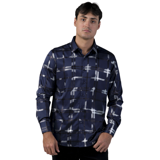 Camisa Benziny Para Caballero Azul Ls5083-navi/silver