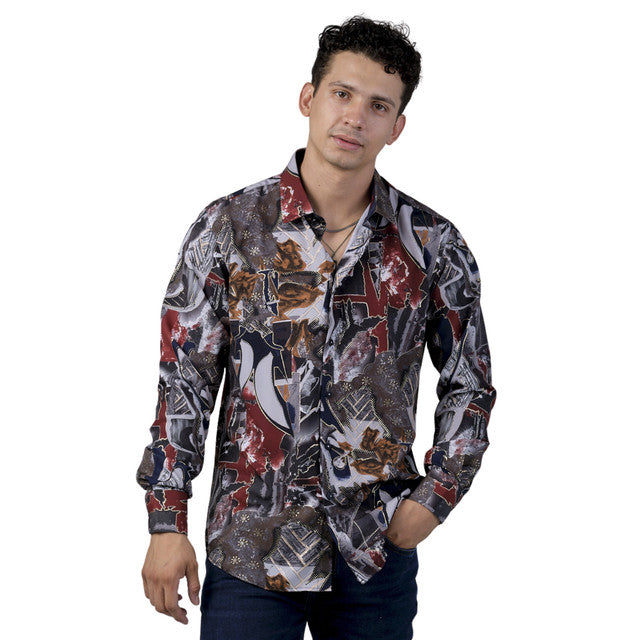 Camisa Benzini Para Caballero Gris Ls5085-navywine