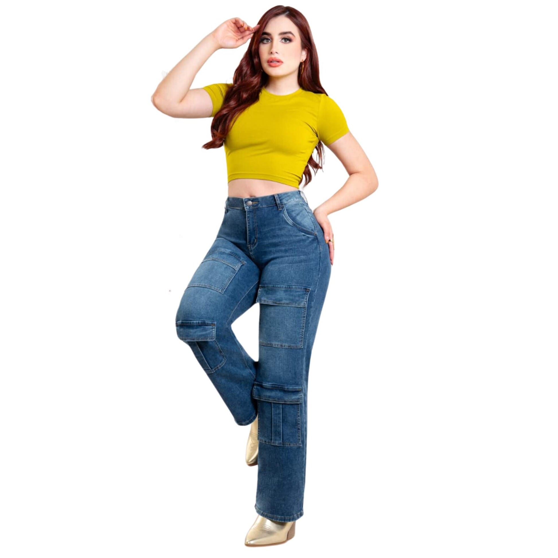 Pantalon Para Mujer De Cargo Marca KOSCH Jeans WLCN 6470 Azul Deslavado