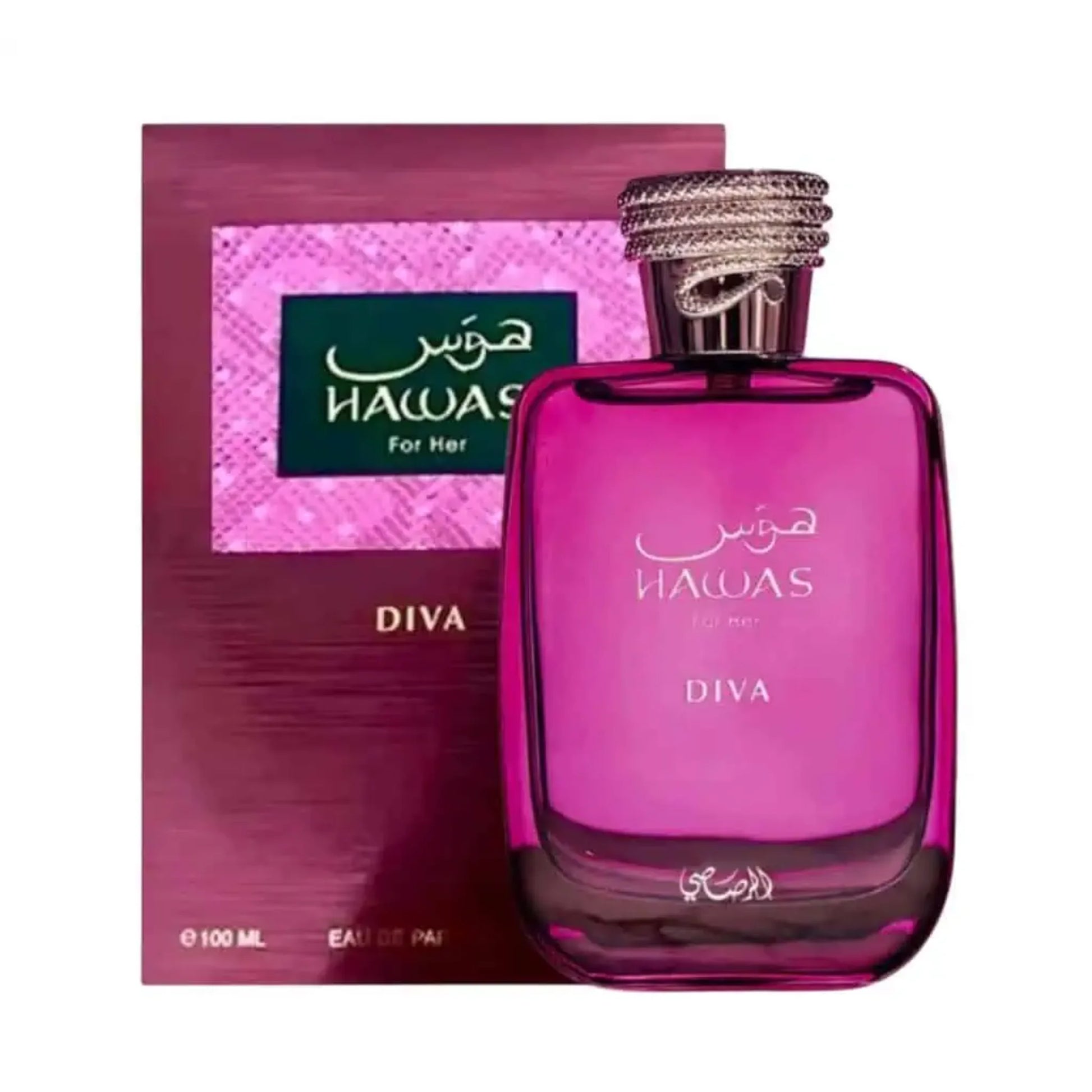 Una fragancia femenina, audaz y magnética que celebra el glamour moderno con un toque oriental sofisticado. Hawas Diva de Rasasi combina dulzura frutal, elegancia floral y un fondo sensual que deja una estela poderosa y memorable, ideal para mujeres seguras, carismáticas y con presencia.
