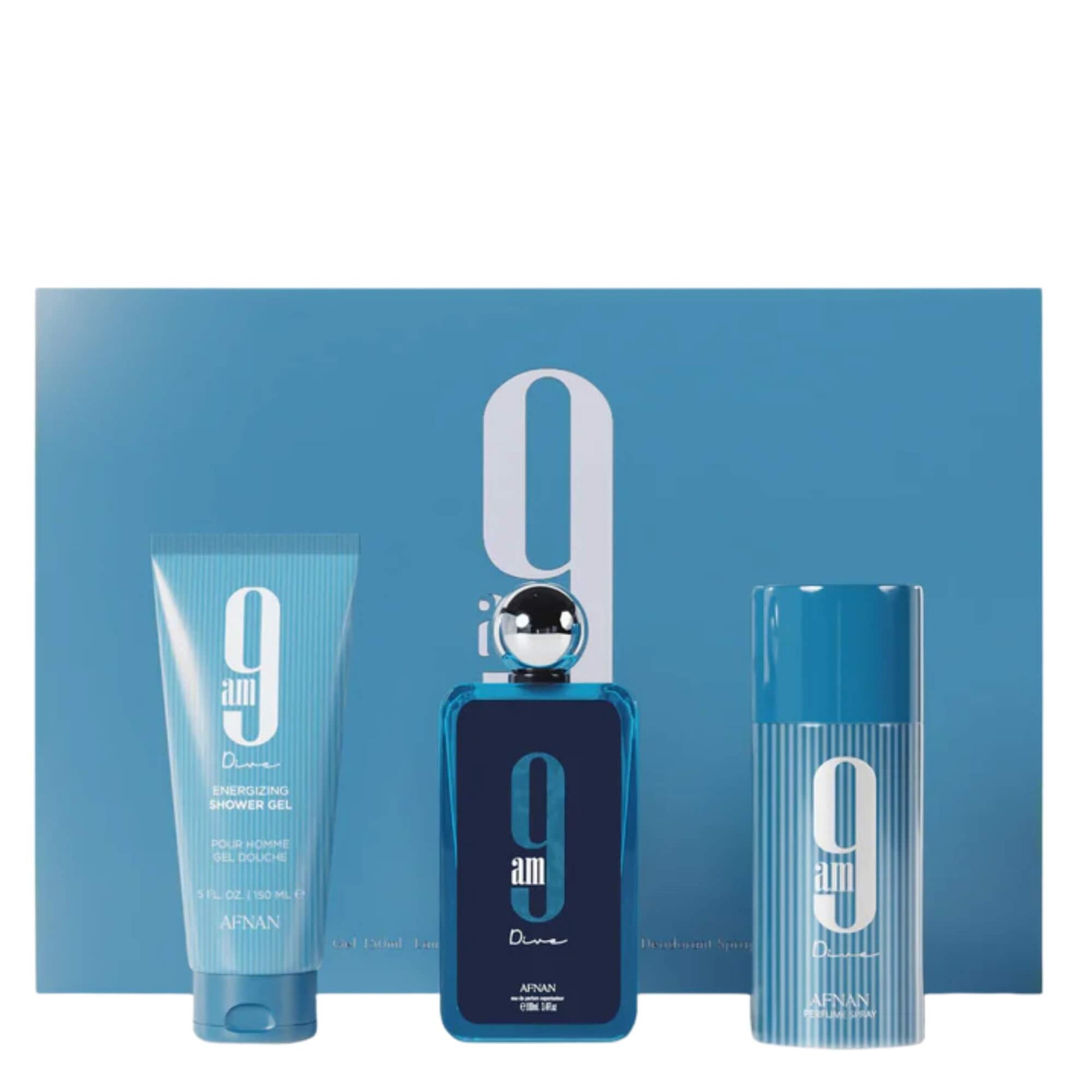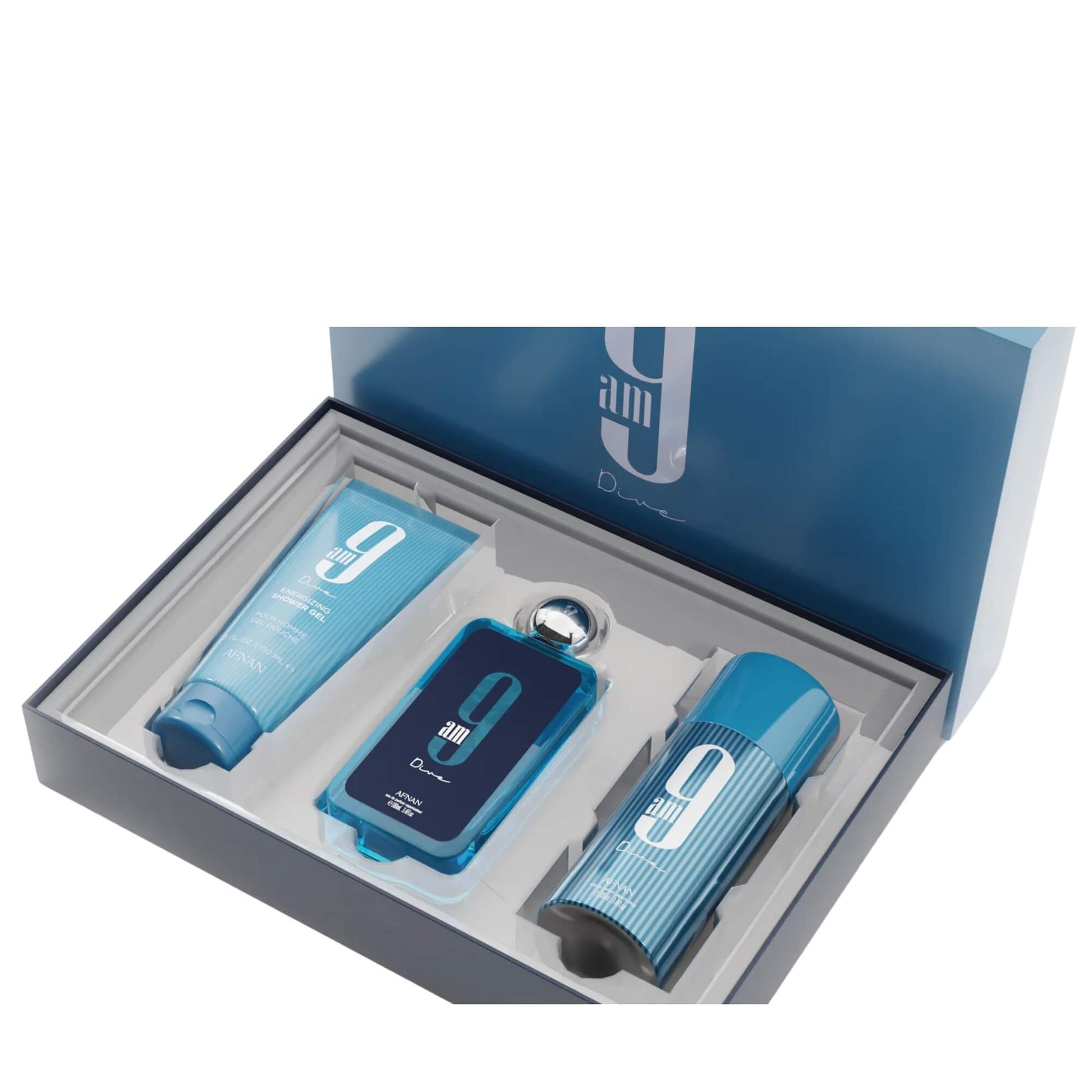 Sumérgete en una experiencia única con el set de 3 piezas 9am Dive. Un perfume fresco y vibrante que te acompañará todo el día.