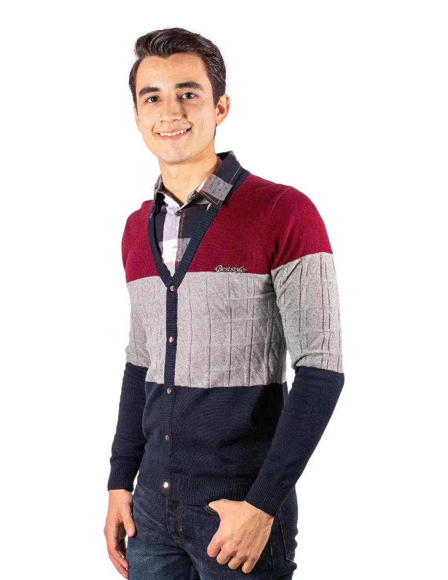 Sweter Para Hombre Con Media Camisa Marca Moderno Grey/Wine