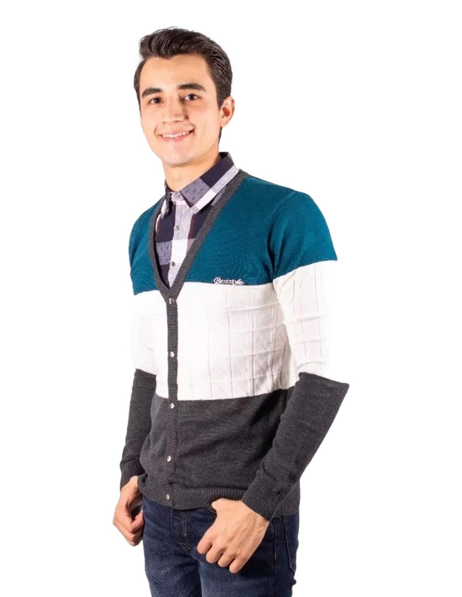 Sweter Para Hombre Con Media Camisa marca Moderno MJ28832-BLUE